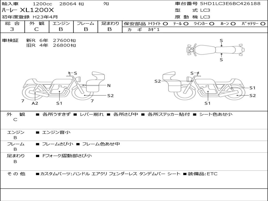 | Номер рамы / VIN | 5HD1LC3E6BC426188 |