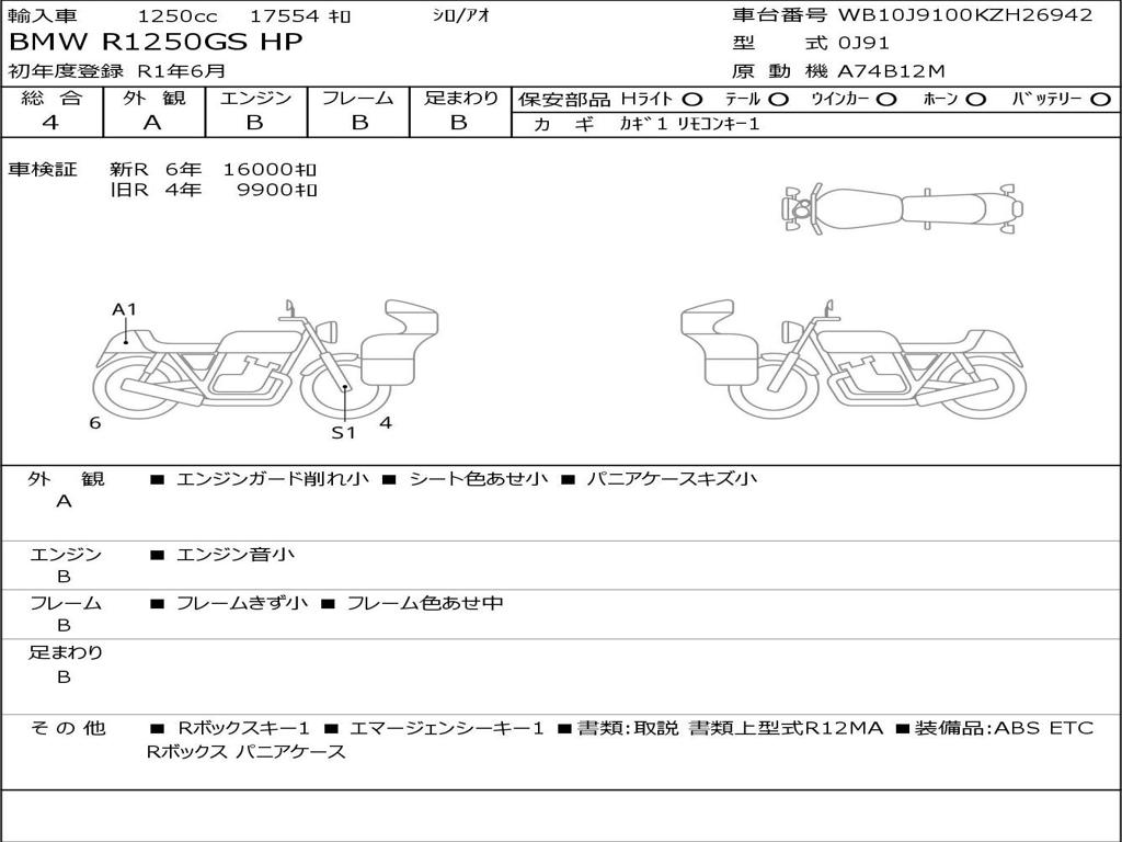 | Номер рамы / VIN | WB10J9100KZH26942 |