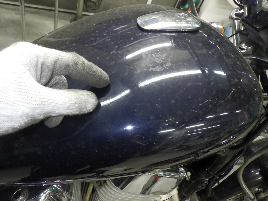 | бензобак | царапины <много>, вмятина <немного>, перекрашено, неравномерность цвета ЛКП |