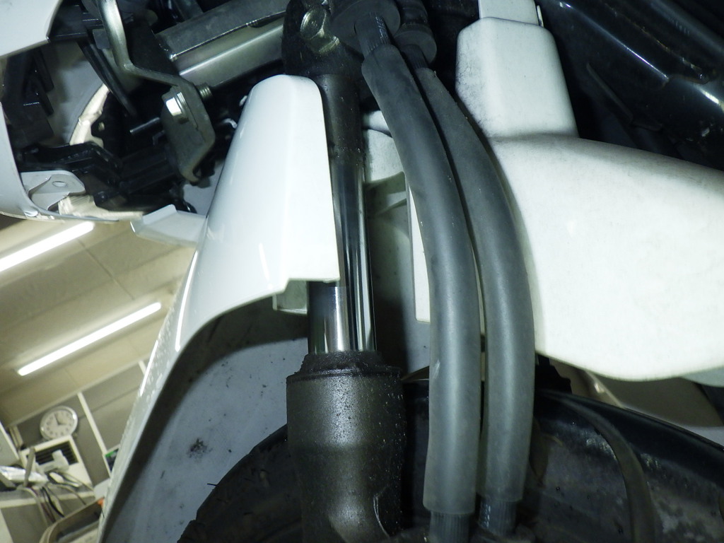 | внешняя часть вилки | царапины, потек масла <много>, слабый |