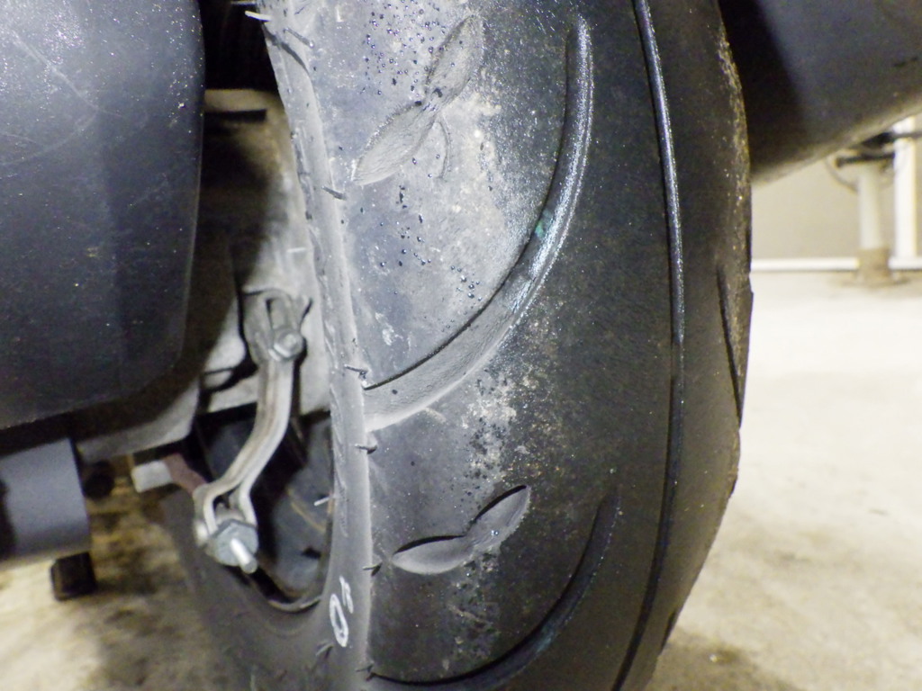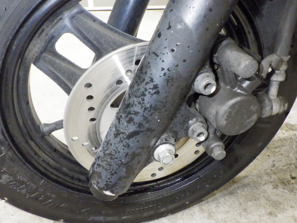 | внешняя часть вилки | царапины, потертость, потек масла <много> |