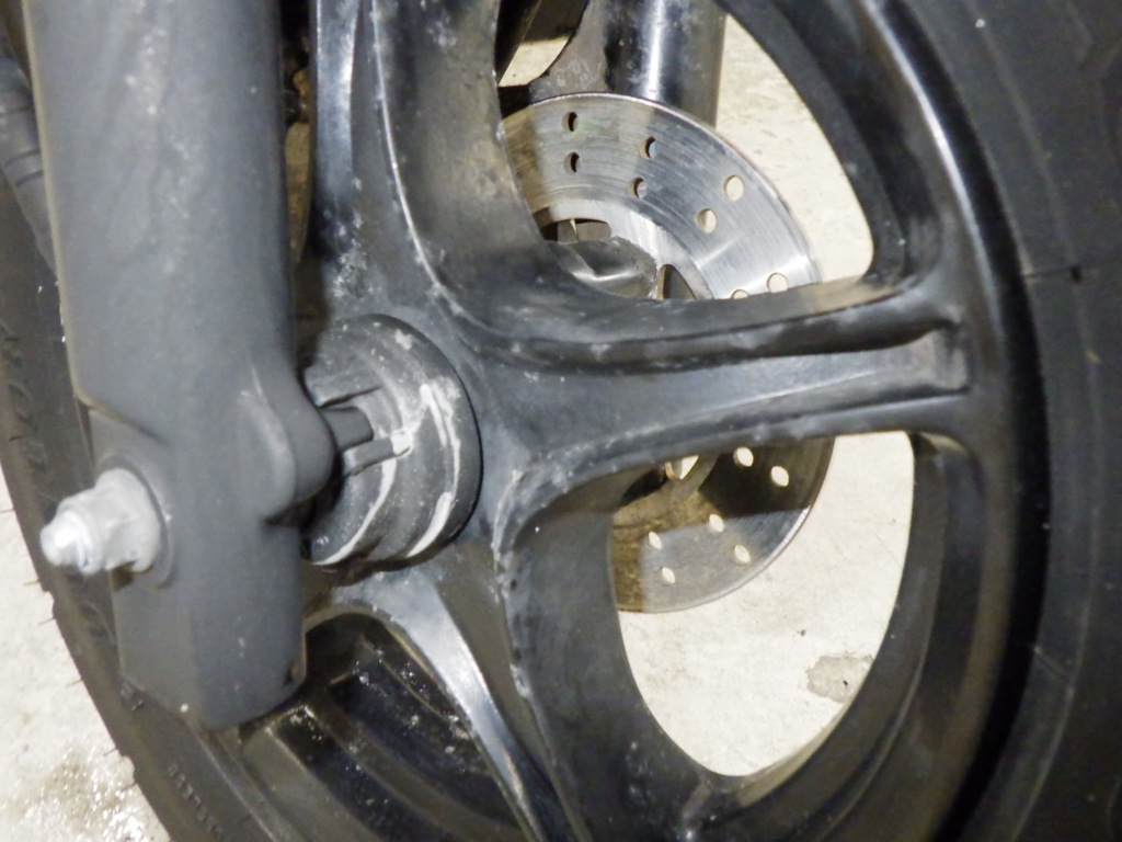 | внешняя часть вилки | царапины <много>, следы коррозии <много>, потек масла, уровень шума |