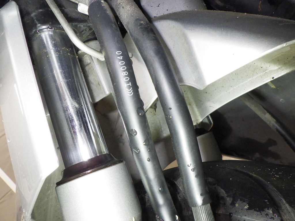 | внешняя часть вилки | следы коррозии, потек масла <много> |