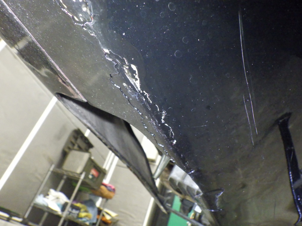 | снизу | царапины <много>, частичная подкраска, потертость краски <много>, трещины, расплавлено |