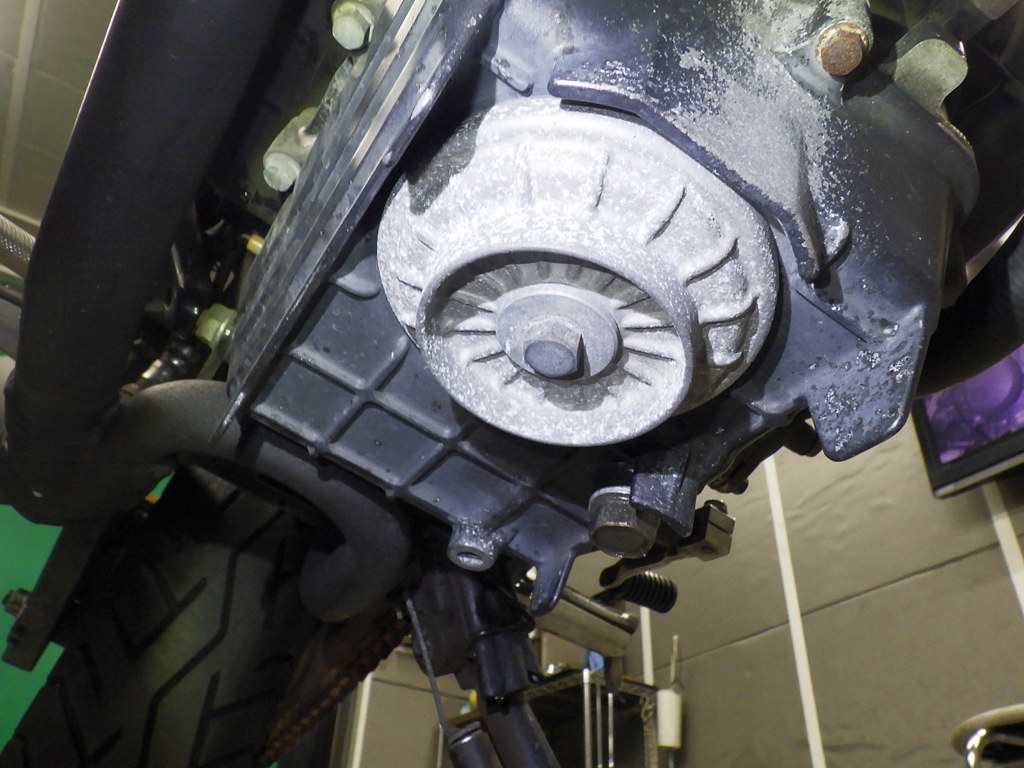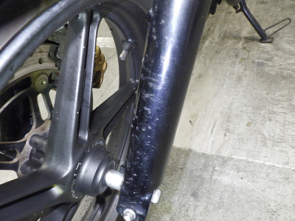 | внешняя часть вилки | царапины, следы коррозии <много>, потек масла <много>, неисправен сальник |