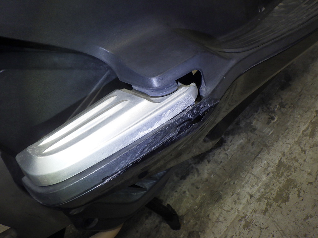 | снизу | царапины <много>, частичная подкраска, неисправность, отсутствует |