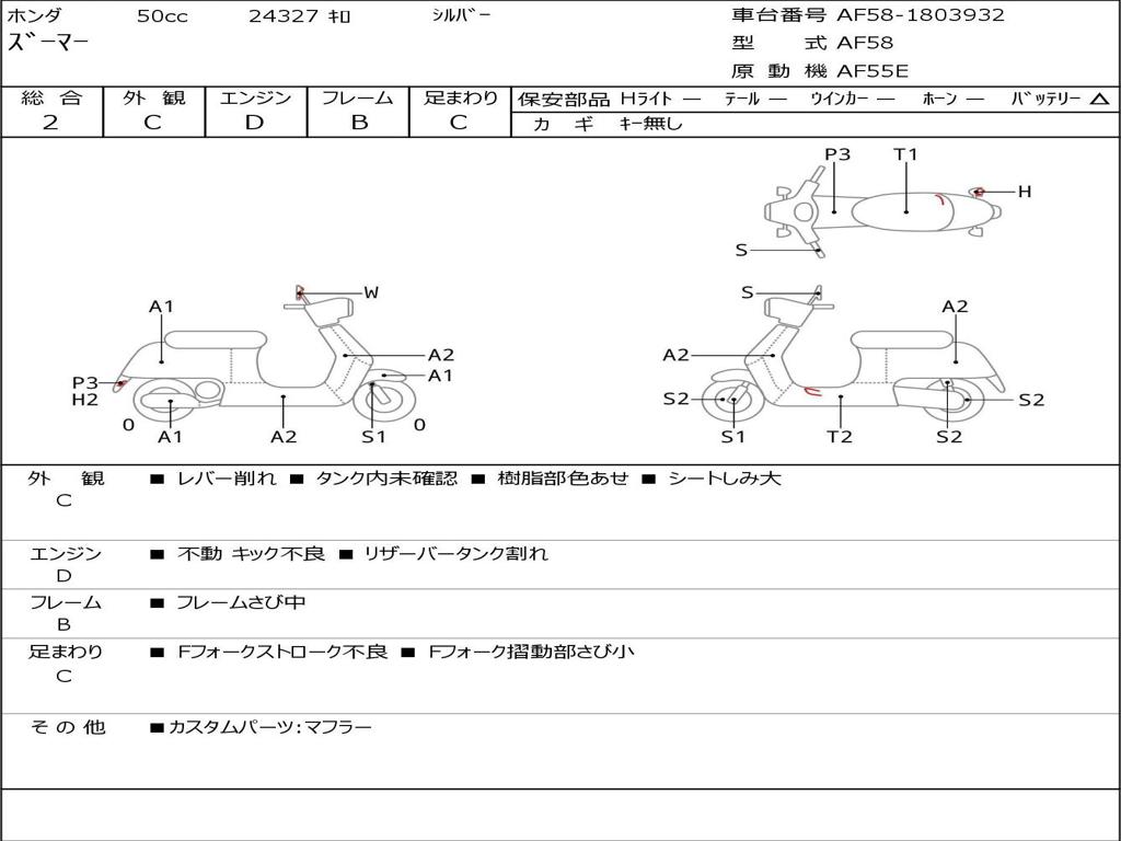| Номер рамы / VIN | AF58-1803932 |