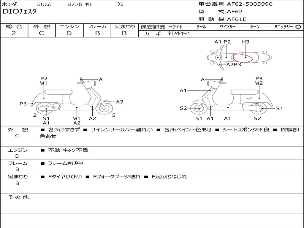 | Номер рамы / VIN | AF62-5005990 |