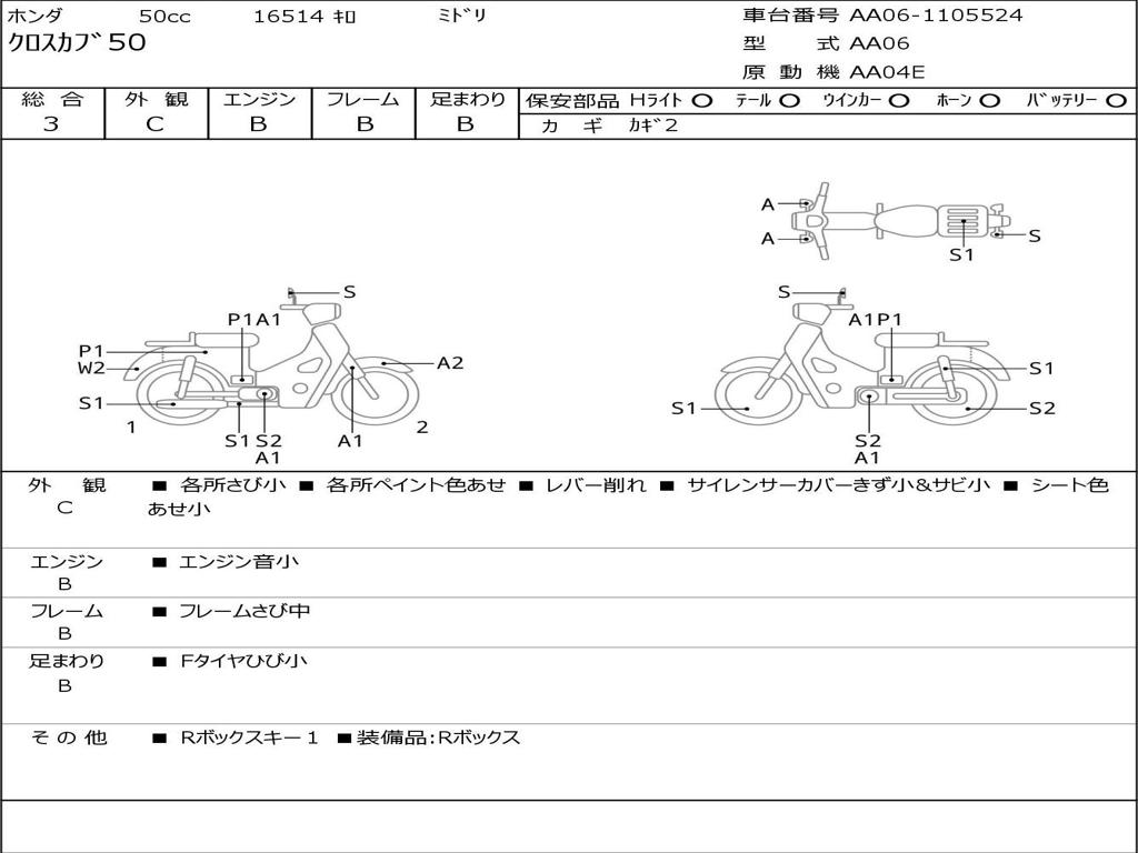 | Номер рамы / VIN | AA06-1105524 |