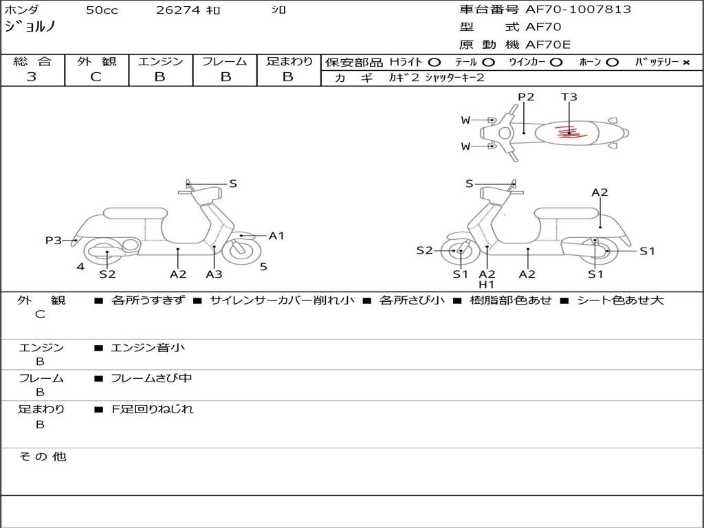 | Номер рамы / VIN | AF70-1007813 |