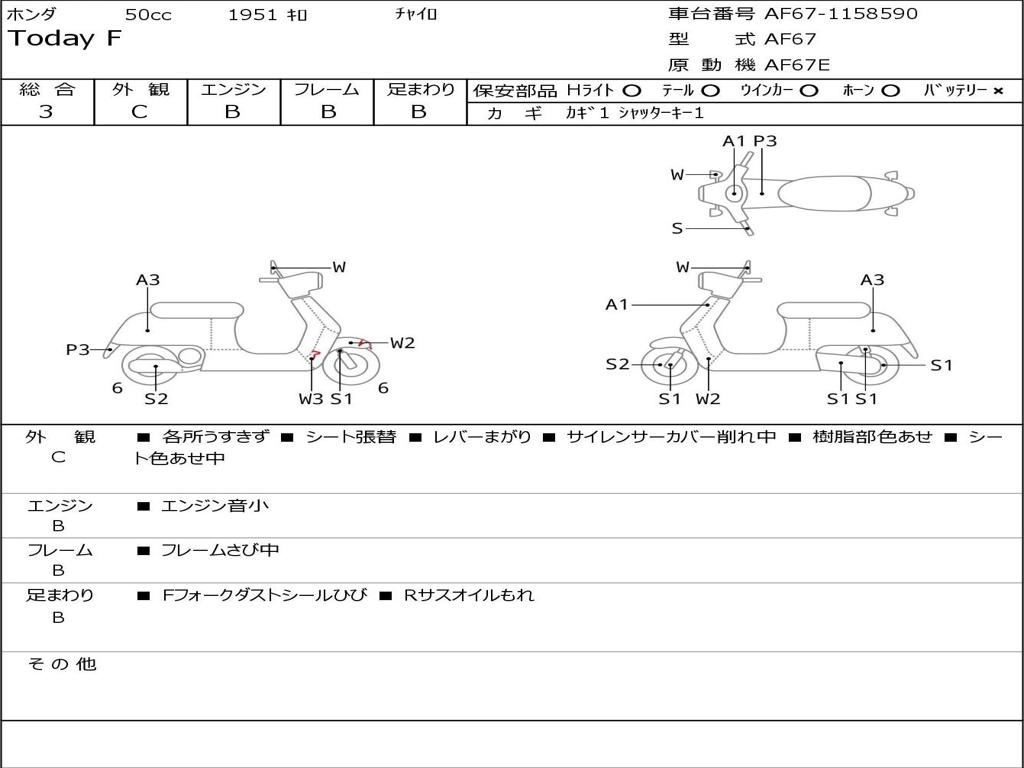 | Номер рамы / VIN | AF67-1158590 |