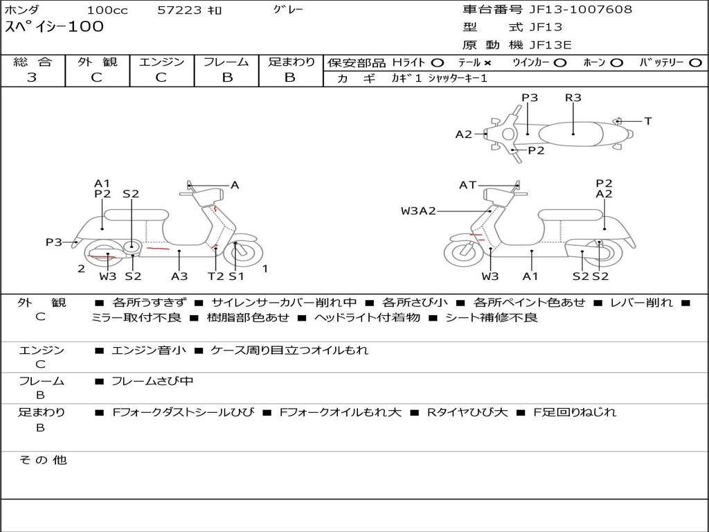 | Номер рамы / VIN | JF13-1007608 |