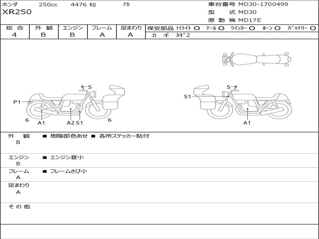 | Номер рамы / VIN | MD30-1700499 |