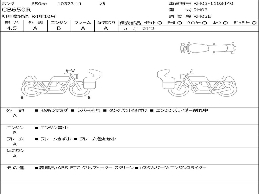 | Номер рамы / VIN | RH03-1103440 |