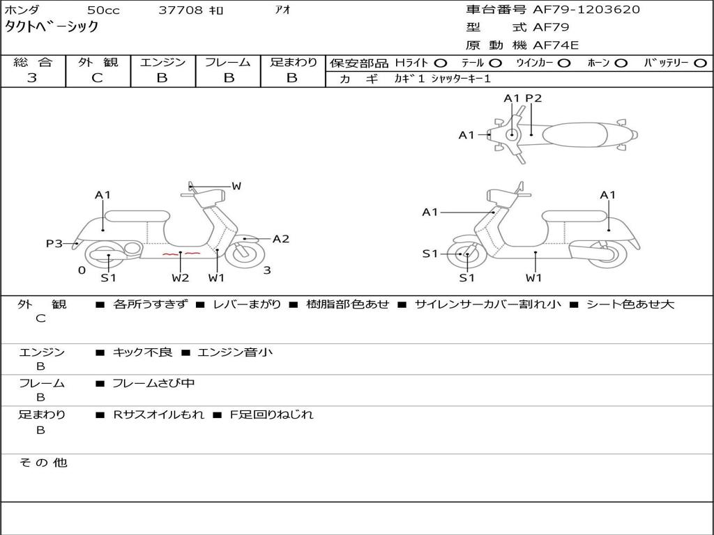 | Номер рамы / VIN | AF79-1203620 |