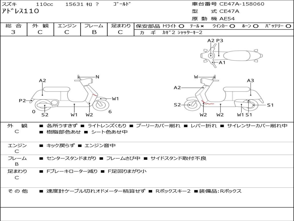 | Номер рамы / VIN | CE47A-158060 |