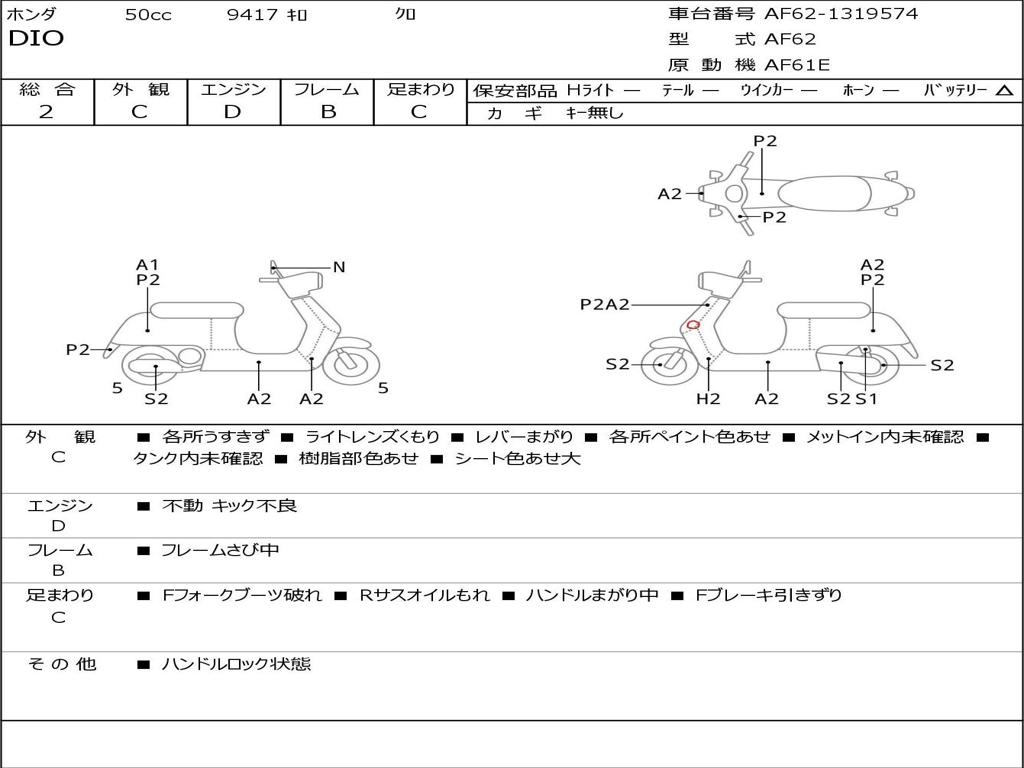 | Номер рамы / VIN | AF62-1319574 |