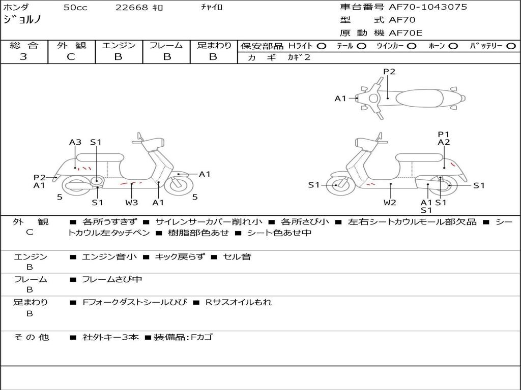 | Номер рамы / VIN | AF70-1043075 |