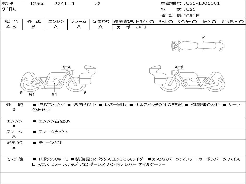 | Номер рамы / VIN | JC61-1301061 |