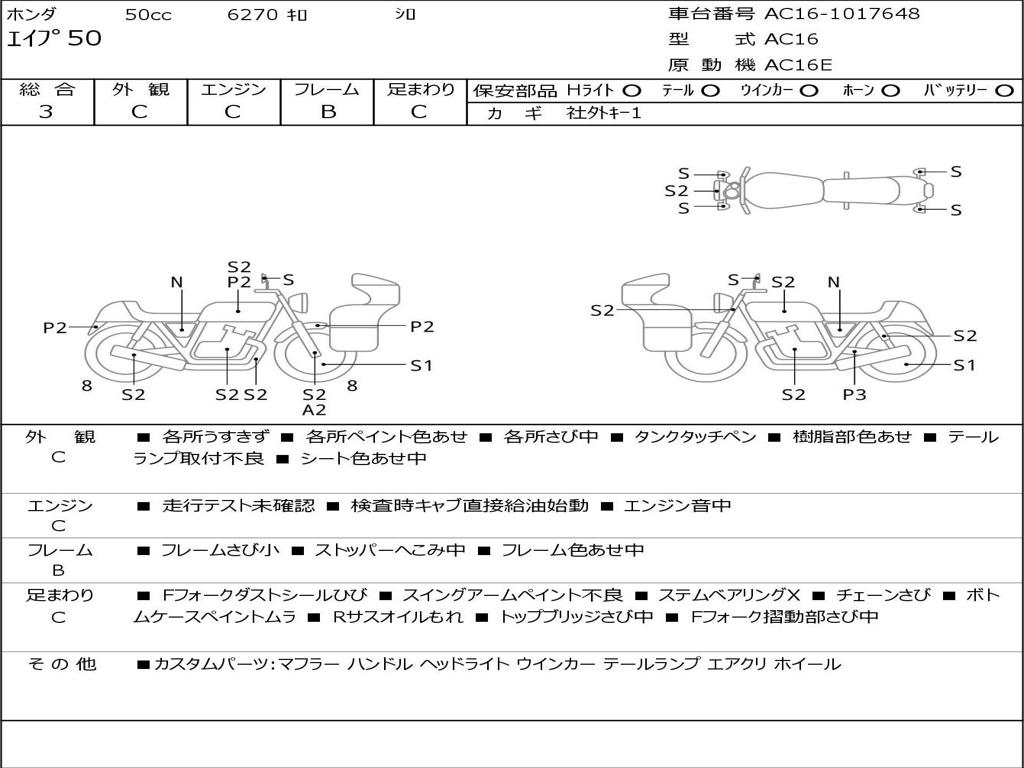| Номер рамы / VIN | AC16-1017648 |