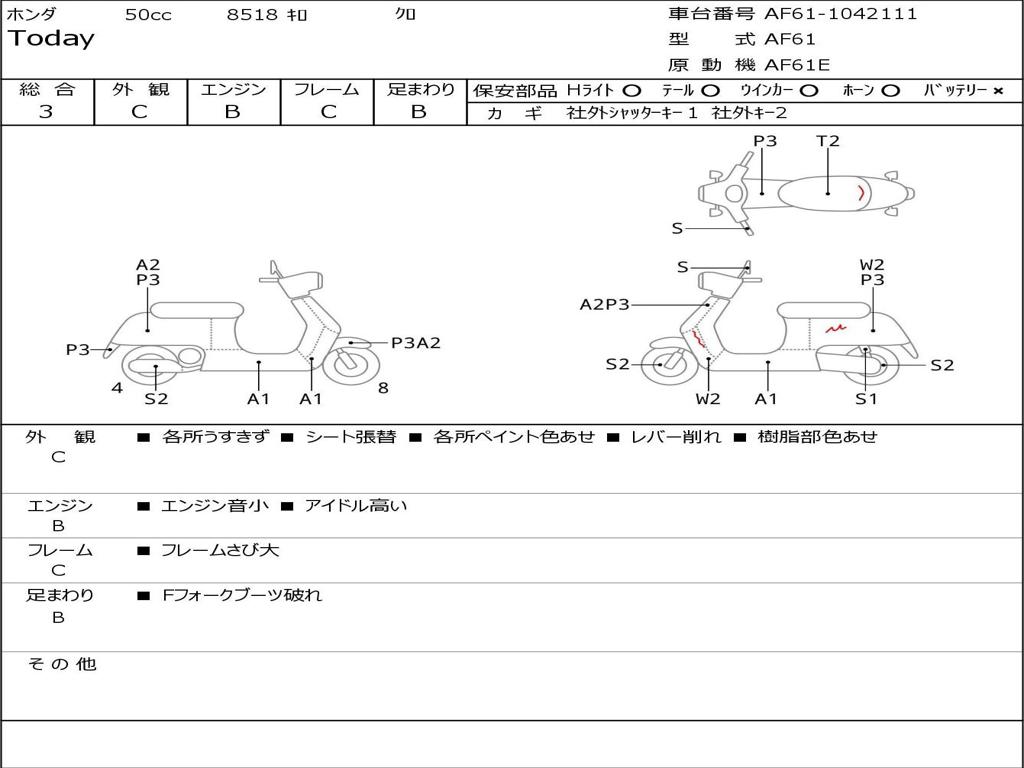 | Номер рамы / VIN | AF61-1042111 |