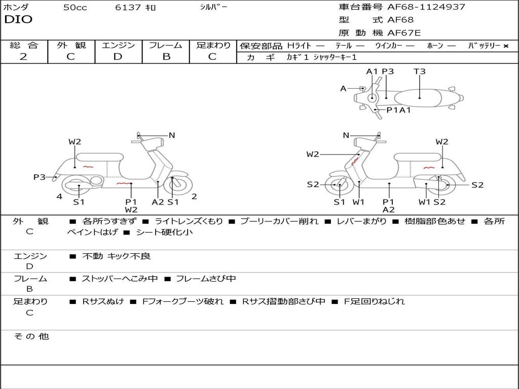 | Номер рамы / VIN | AF68-1124937 |