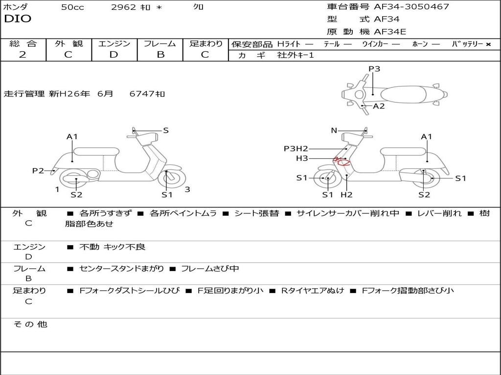 | Номер рамы / VIN | AF34-3050467 |