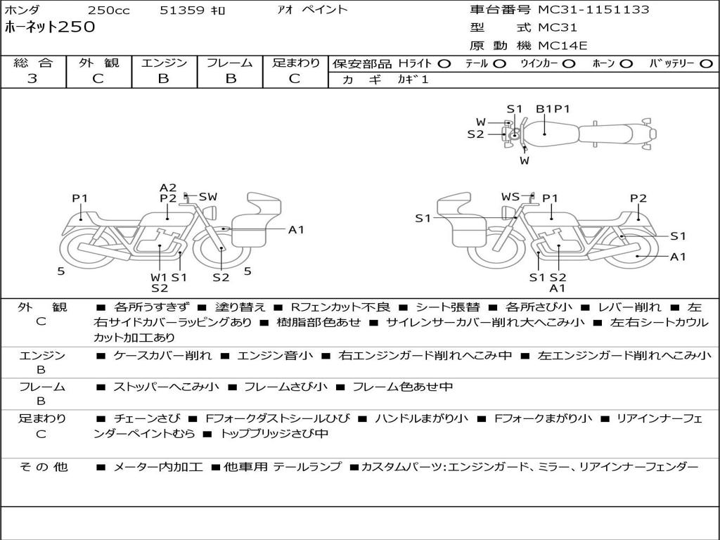 | Номер рамы / VIN | MC31-1151133 |