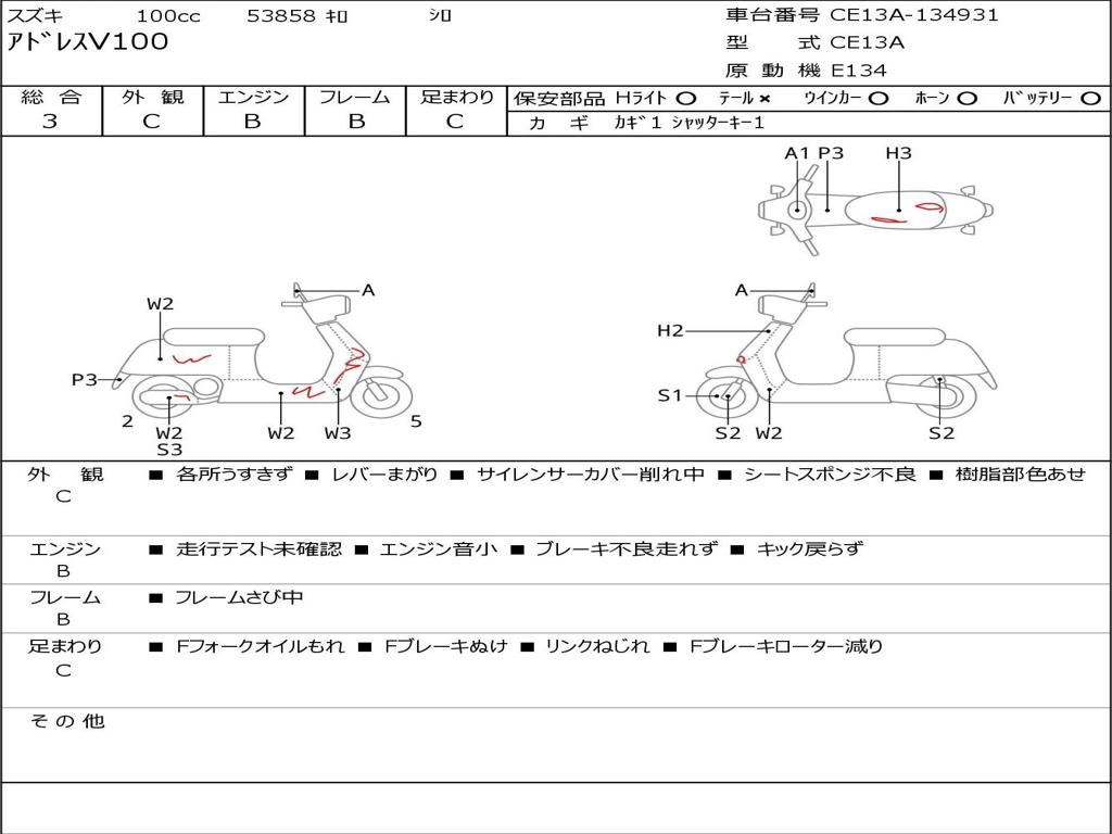 | Номер рамы / VIN | CE13A-134931 |