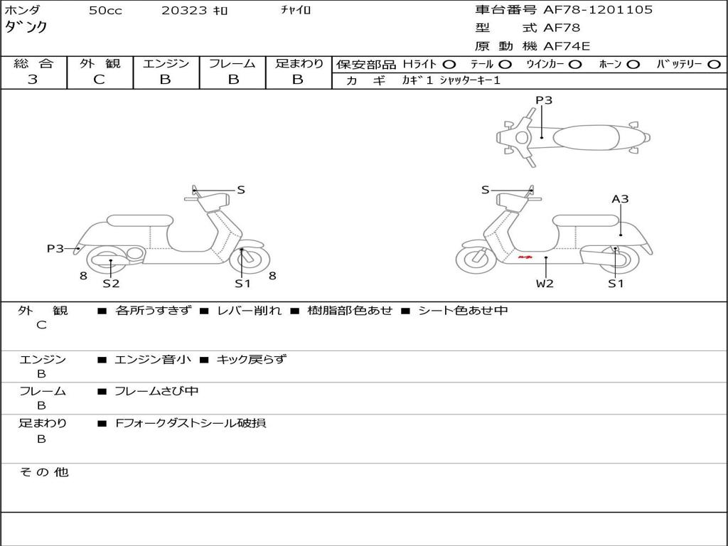 | Номер рамы / VIN | AF78-1201105 |