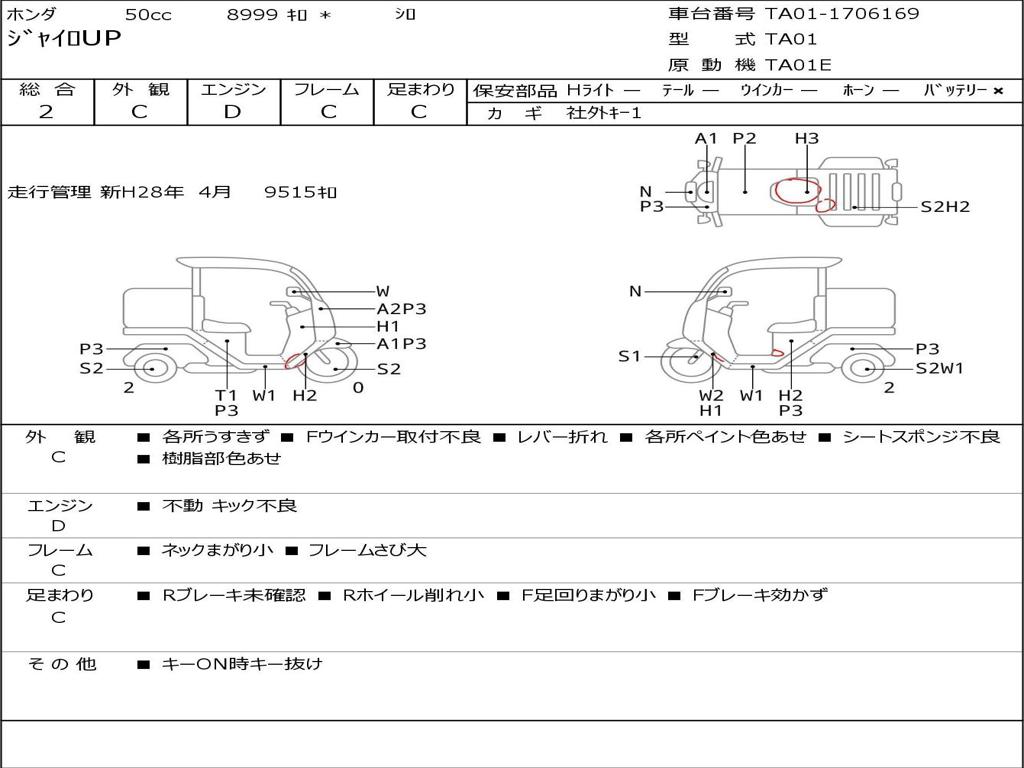 | Номер рамы / VIN | TA01-1706169 |