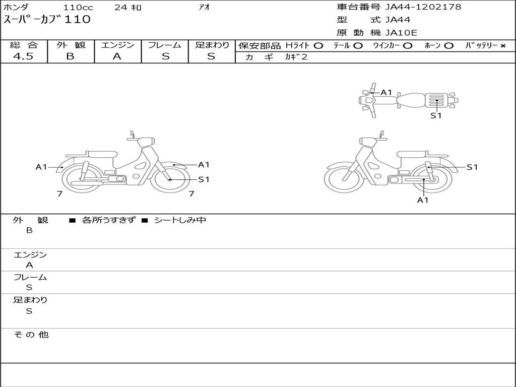| Номер рамы / VIN | JA44-1202178 |