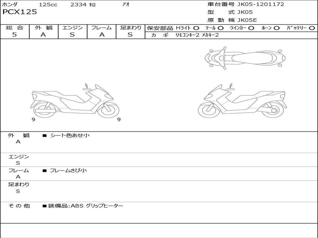 | Номер рамы / VIN | JK05-1201172 |