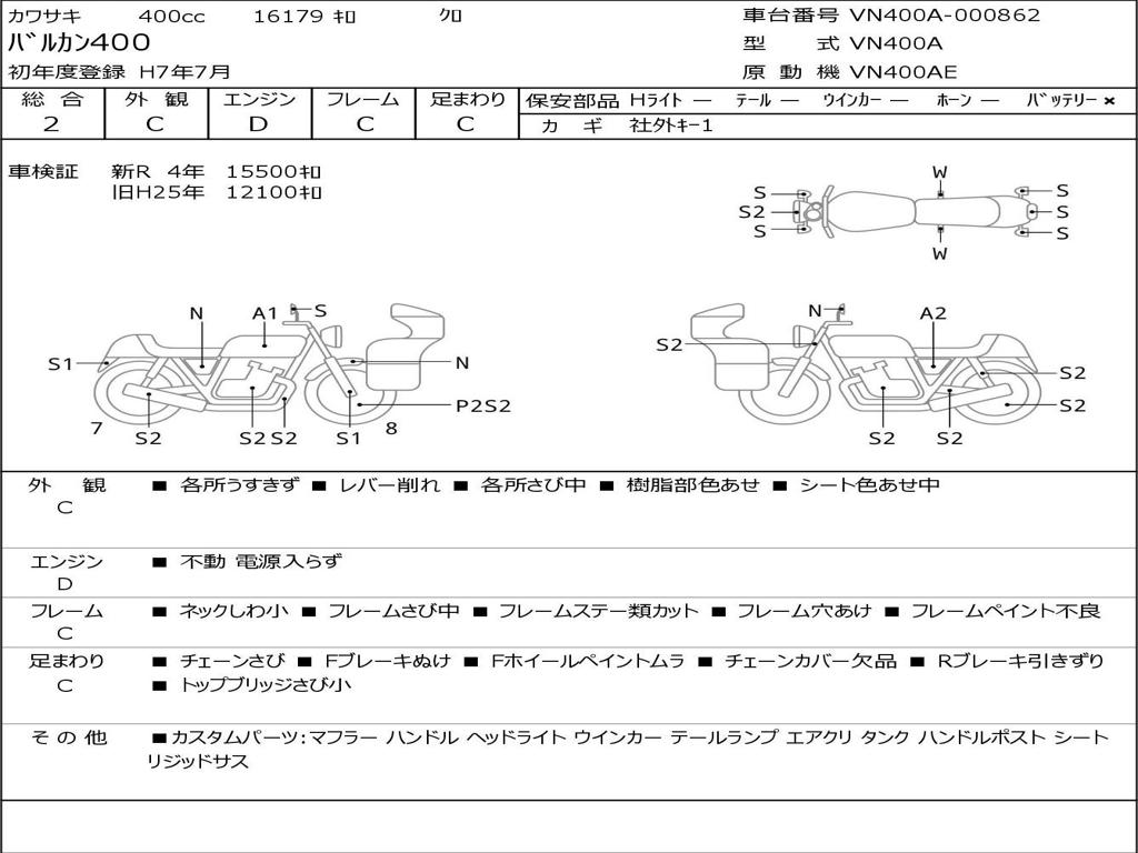 | Номер рамы / VIN | VN400A-000862 |