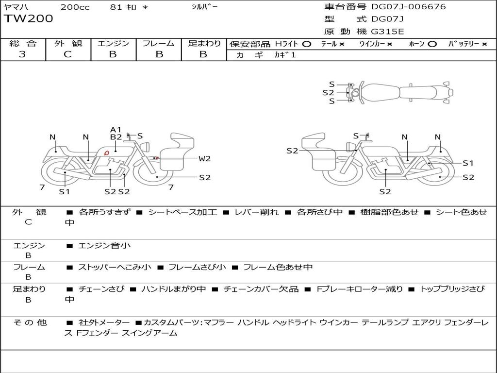 | Номер рамы / VIN | DG07J-006676 |