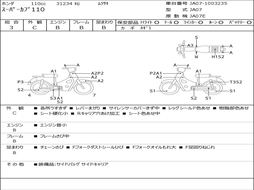 | Номер рамы / VIN | JA07-1003235 |