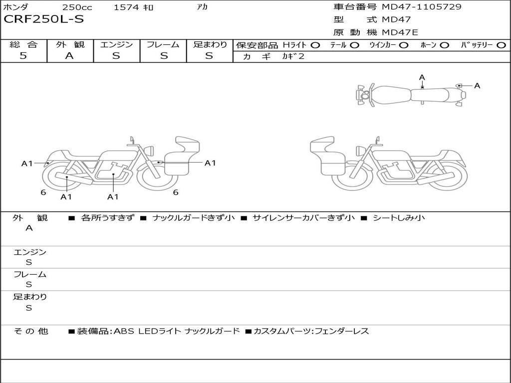 | Номер рамы / VIN | MD47-1105729 |
