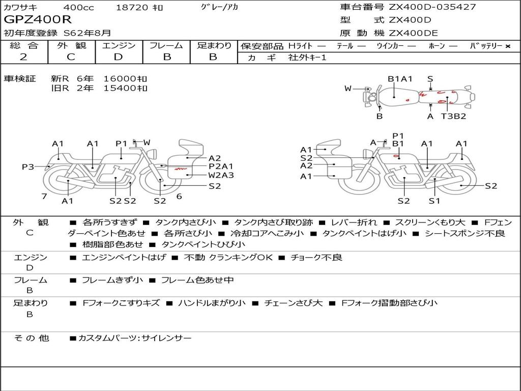| Номер рамы / VIN | ZX400D-035427 |