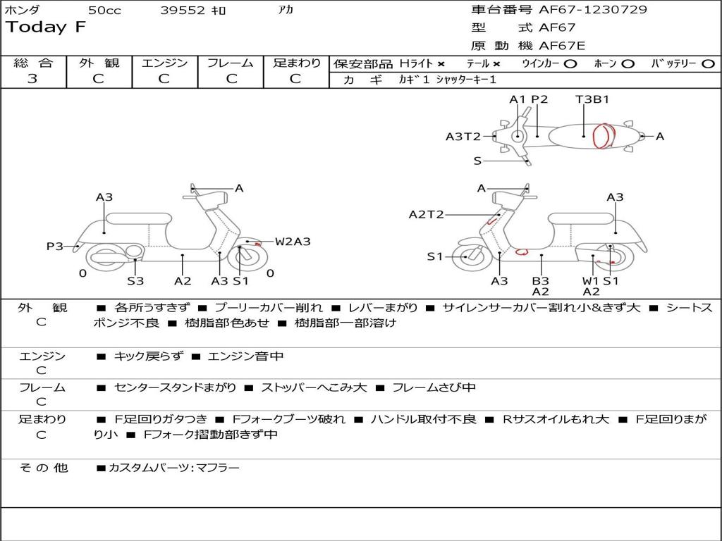 | Номер рамы / VIN | AF67-1230729 |