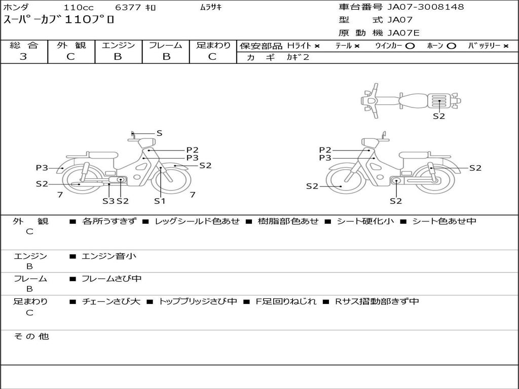 | Номер рамы / VIN | JA07-3008148 |