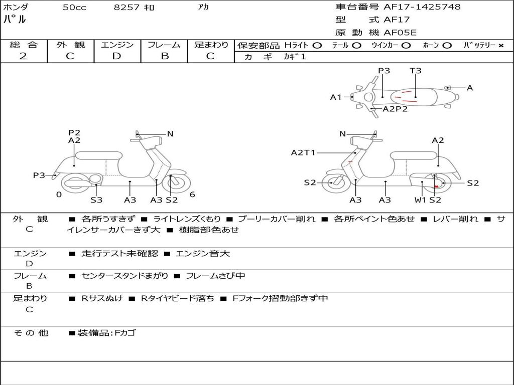 | Номер рамы / VIN | AF17-1425748 |