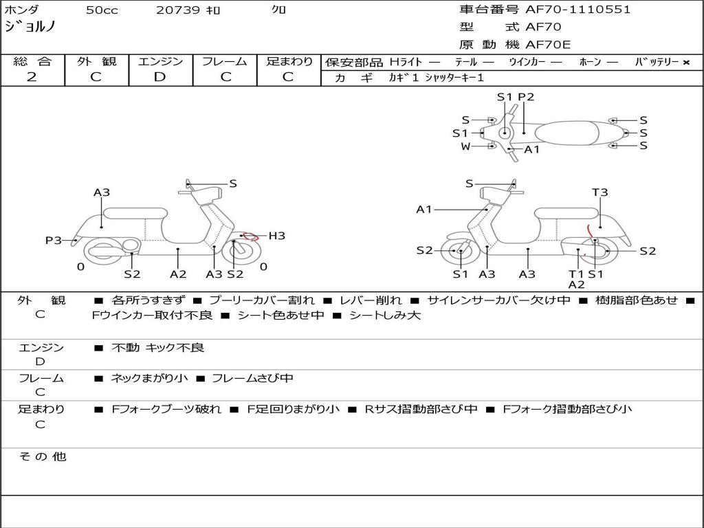 | Номер рамы / VIN | AF70-1110551 |