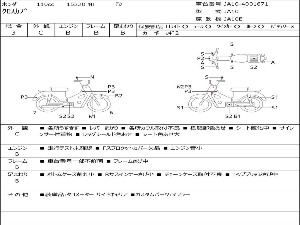 | Номер рамы / VIN | JA10-4001671 |
