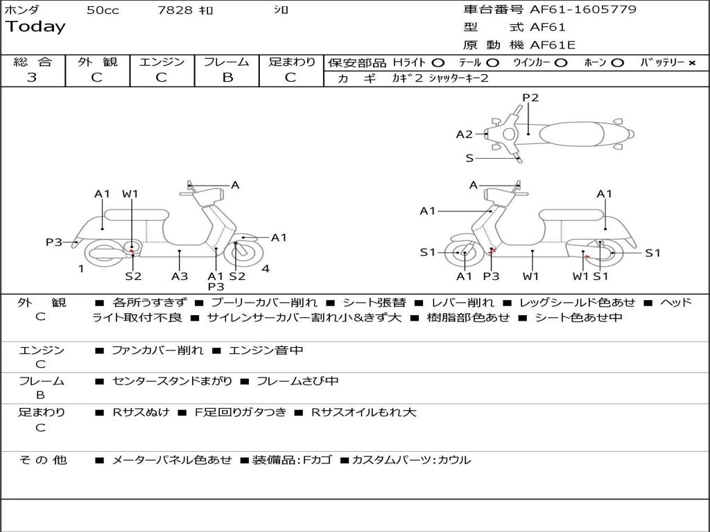 | Номер рамы / VIN | AF61-1605779 |