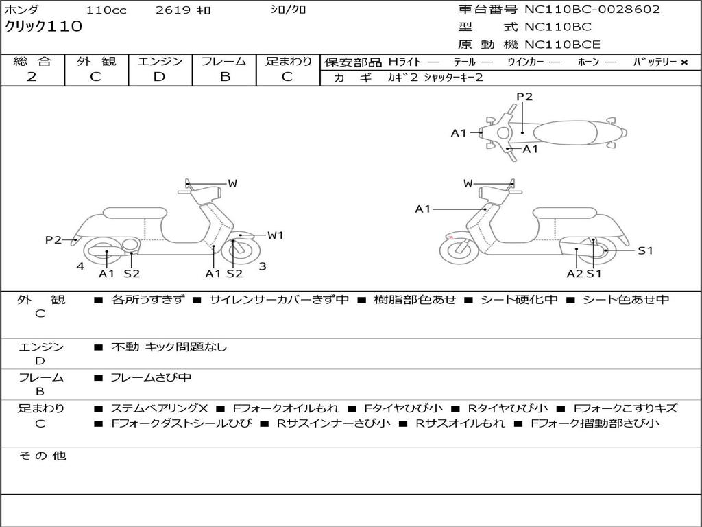 | Номер рамы / VIN | NC110BC-0028602 |