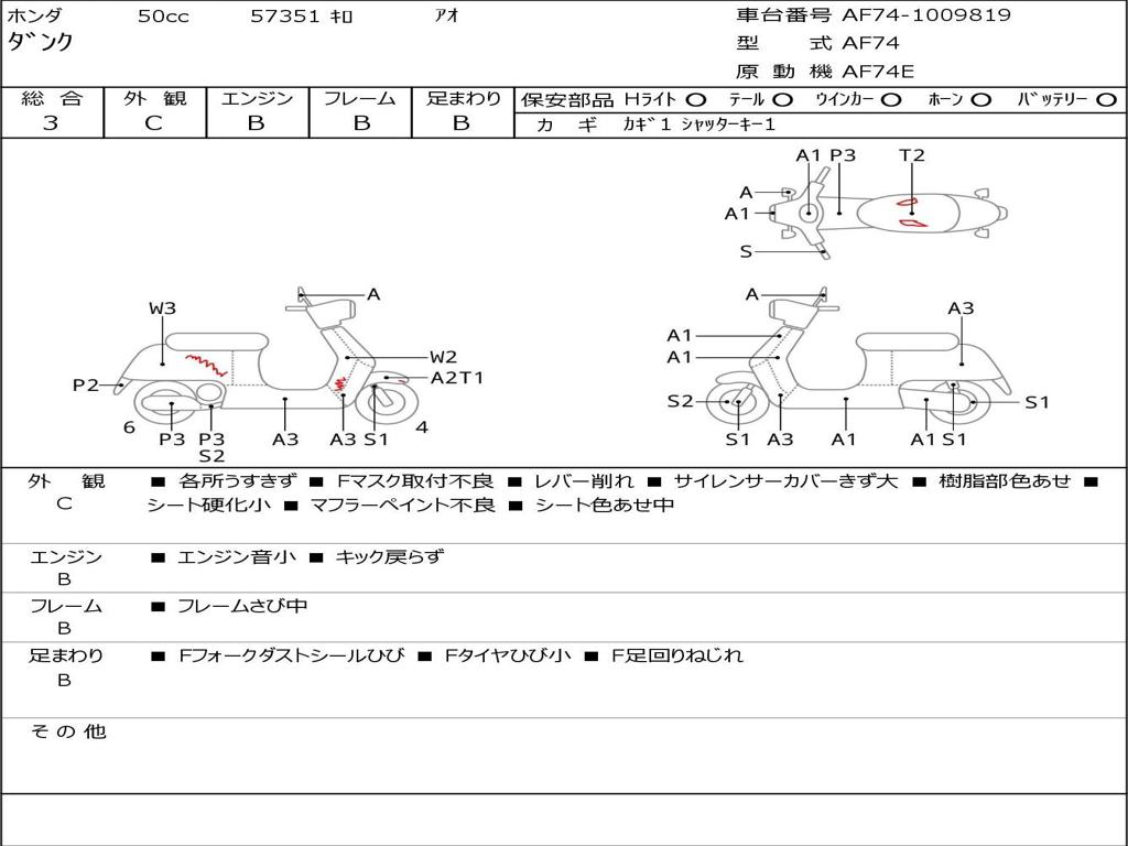| Номер рамы / VIN | AF74-1009819 |