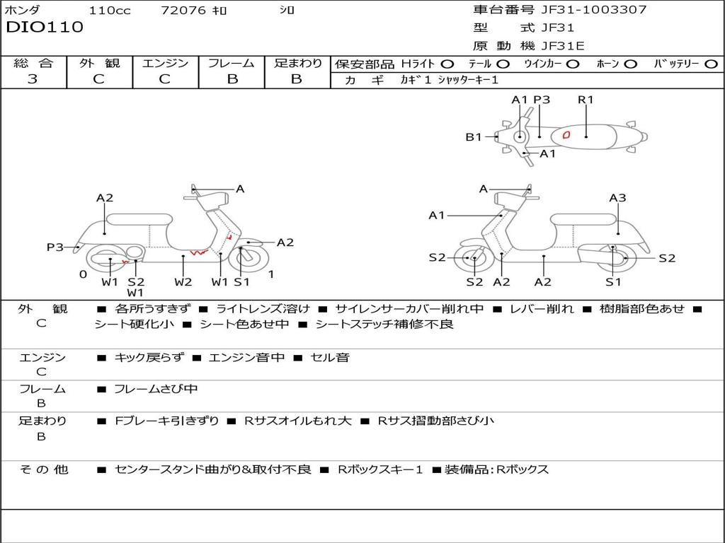 | Номер рамы / VIN | JF31-1003307 |