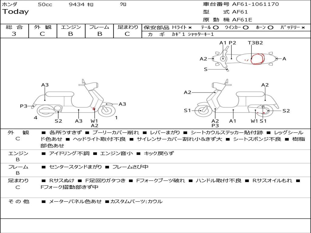 | Номер рамы / VIN | AF61-1061170 |