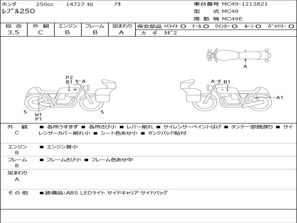 | Номер рамы / VIN | MC49-1213821 |