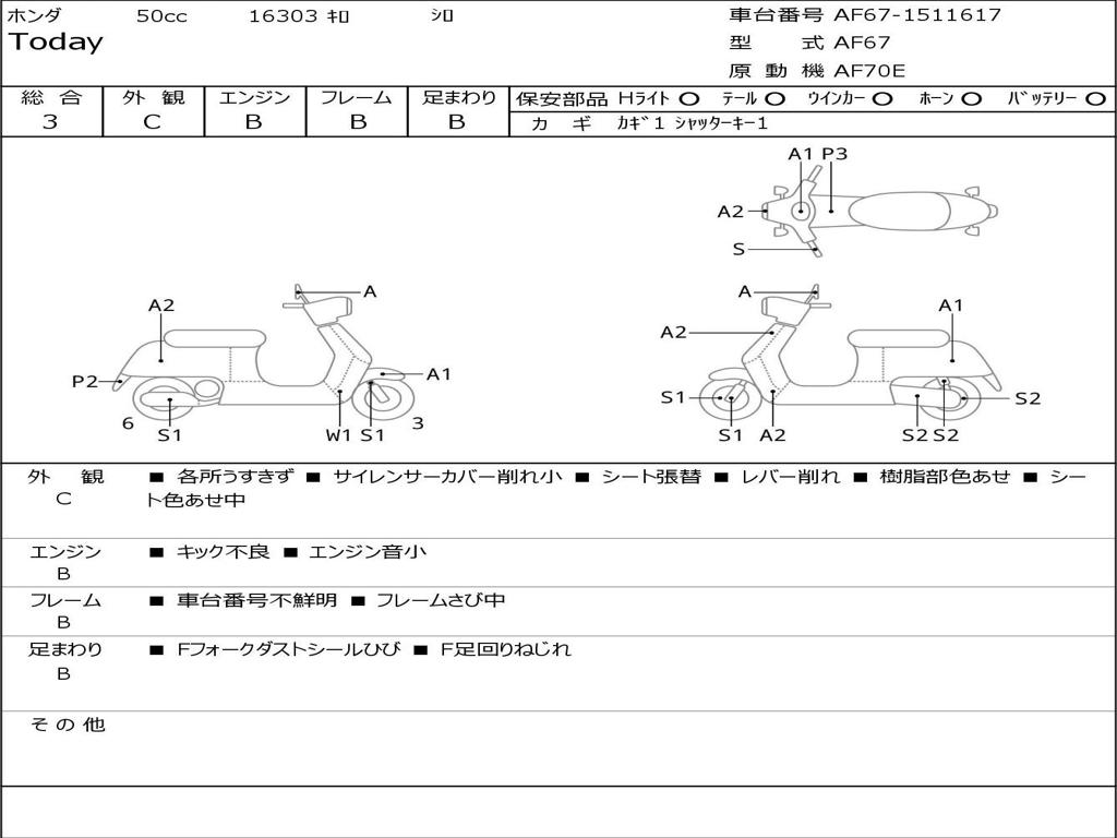 | Номер рамы / VIN | AF67-1511617 |